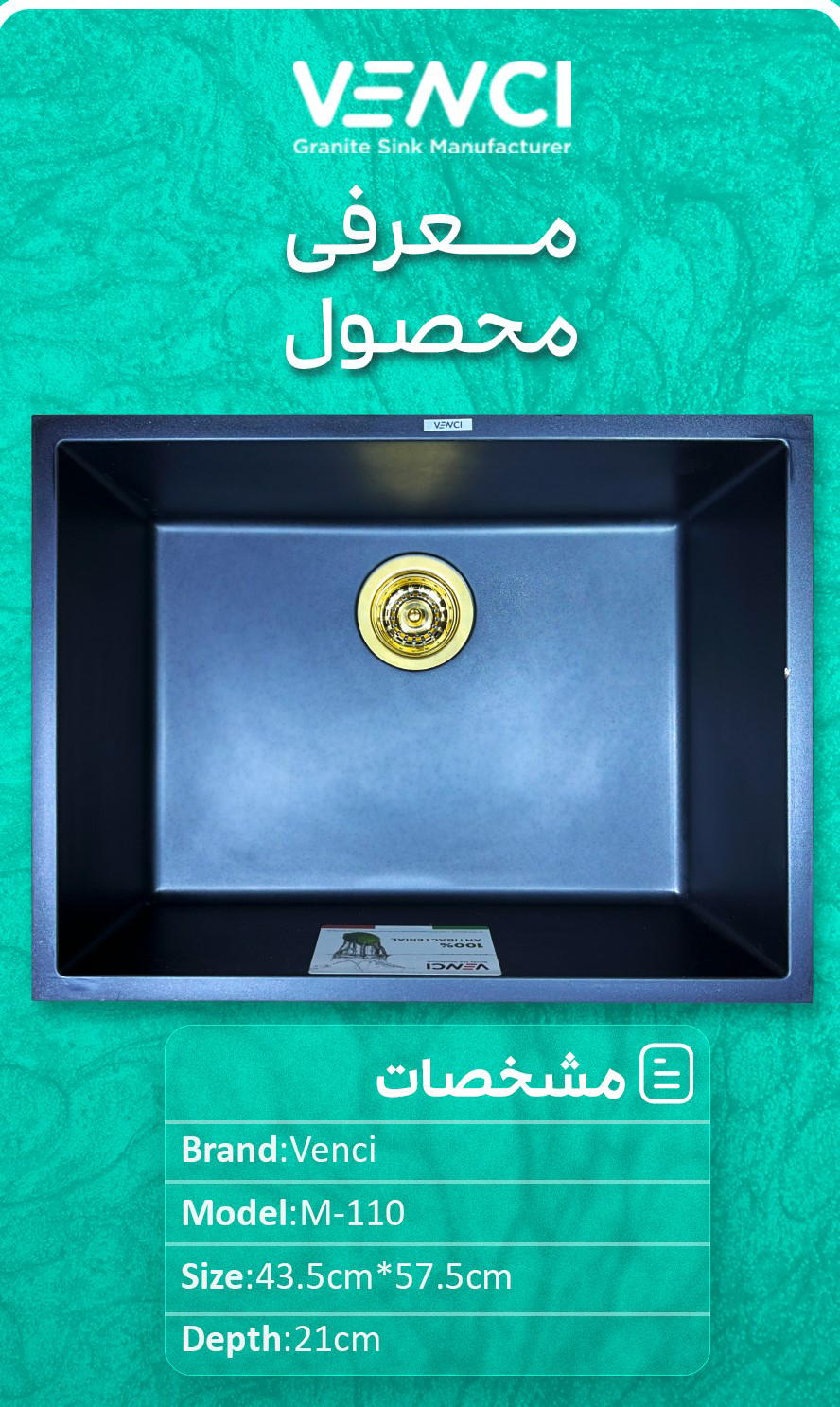 سینک ظرفشویی گرانیتی ونسی مدل M110