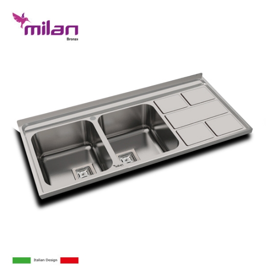 جنس: استنلس استیل 304 نوع سینک: روکار تعداد لگن: دو لگن لگن چپ و راست: دارد عمق لگن: 20 سانتیمتر سینی: دارد ابعاد سینک: 60*120 سانتیمتر