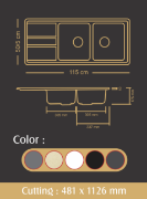 سینک های گرانیکو در ۴ مدل متنوع (دو لگنه به همراه سینی، دو لگنه بدون سینی، تک لگنه به همراه میوه شور و تک لگنه) ۱۷ طرح مختلف سینی و لگن با تنوع رنگی سفید، مشکی، کرم روشن، طوسی روشن، طوسی تیره و رنگهای فانتزی و رگه دار عرضه می شوند