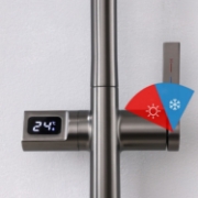 ویژگی پر کاربرد و البته خاص این محصول نیز، نمایشگر دمای آب است. این نمایشگر انرژی مورد نیاز خود را از جریان آب درون لوله می گیرد و هیچ نیازی به استفاده از برق یا باتری ندارد. علاوه بر این امکانات جذاب و کاربردی، این محصول طراحی شاوری دارد که سر شلنگی تا حدود 30 سانتی متر قابلیت دسترسی به شما ارائه می کند که البته این میزان از طریق وزنه تعبیه شده قابل تغییر است. سری این شیر شاوری دارای دو حالت پاشش آب متغییر نیز هست که با فشار دادن تنها دکمه تعبیه شده رو سری می توانید این حالت را تنظیم کنید.